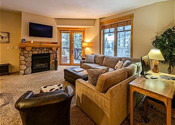This 1 bedroom + loft, two bath, 870 sq ft condo sleeps 6 and is less than a minute from the ski lifts, restaurants, and shops. Located in the heart of Copper Mountain's Center Village, the unit's open floor plan and comfortable living area makes a perfect place to relax with your whole family. The oversize covered balcony is a great place to take in sunsets and watch the snow fall. In the living room, there is a queen size sleeper sofa, a cozy Fireplace and a TV. The full kitchen has everything you will need to make any meals, but why not eat at one of the many restaurants encircling the condo and really take it easy on your vacation! Both bedrooms have a king bed, one with an en suite bathroom. Free WiFi, The building offers Community Hot Tub, Laundry Facilities, Ski Lockers, Free Parking, and a beautiful Lobby Area. Tucker Mountain 302 is ideal for the guest looking for Copper Mountain's best lift access at an affordable price. | Summit County Colorado Short Term Rental Permit # | One parking space per condo available on-site. Any additional vehicles have to park at the North Alpine Lot. Please note that Copper is now charging $20 per night for overflow parking.